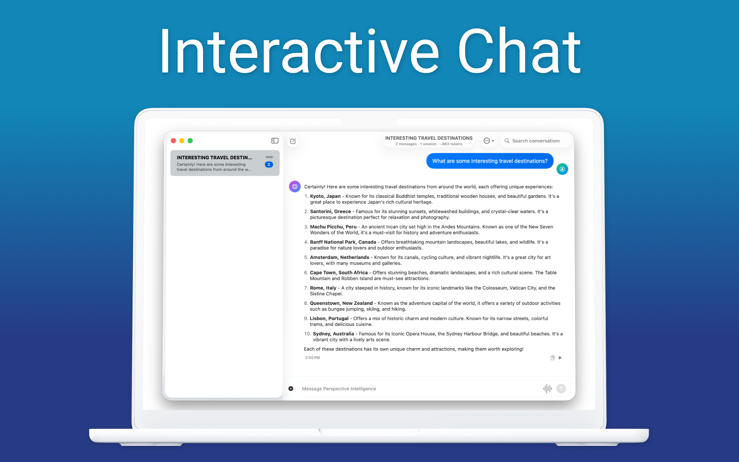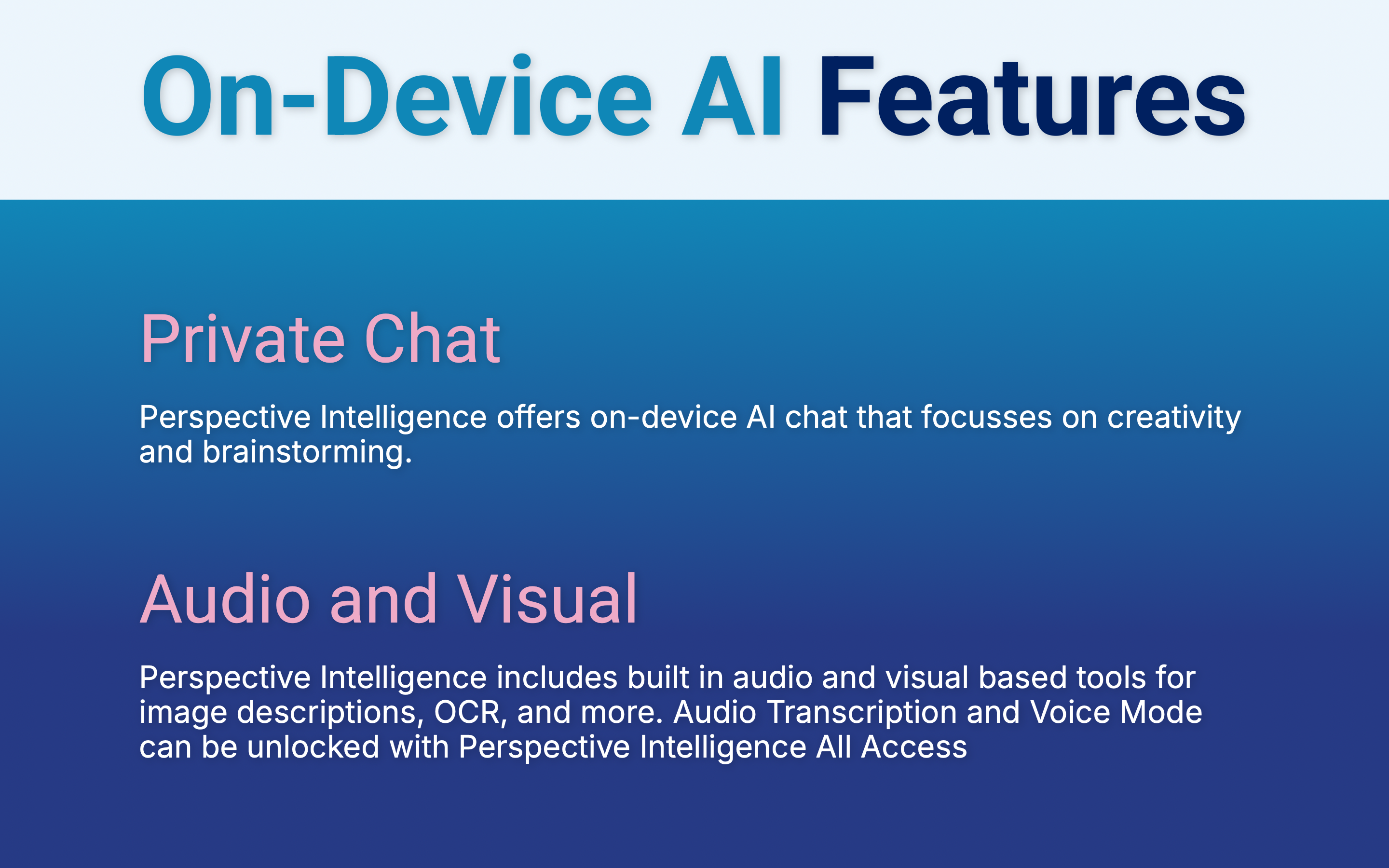Perspective Intelligence is now live on macOS. Experience the power of on device private AI on your device with all of the features found in our iOS version of the app!
